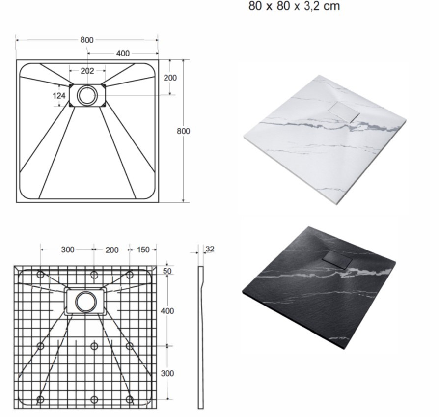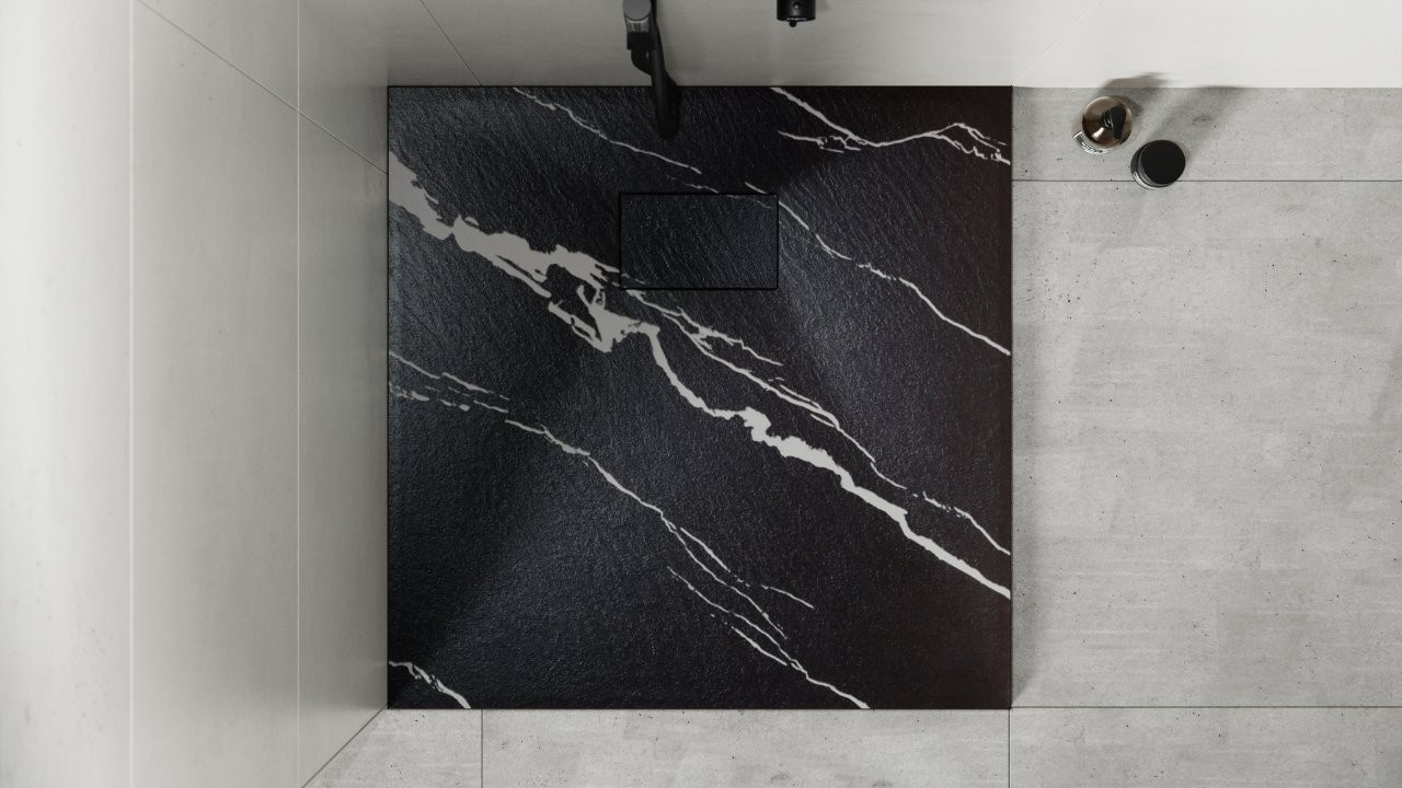 VEXO MARBLE ČTVEREC, SMC vanička, 80x80x3,2 cm, černá barva, bez nožiček