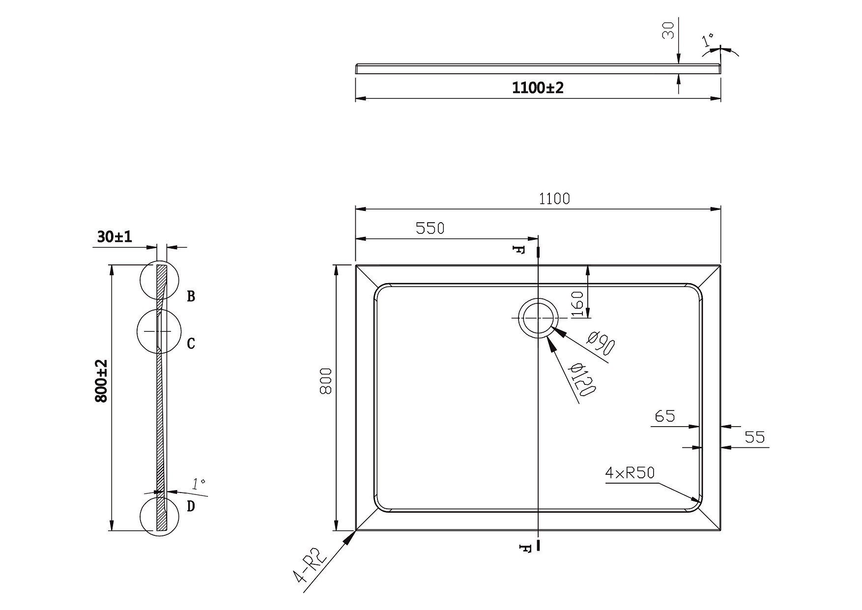Vanička je vhodná k osazení na moderní obdelníkové sprchové kouty.