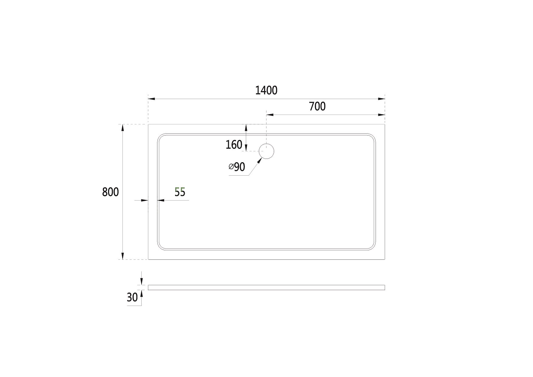 - Průměr otvoru pro sifon - 90 mm