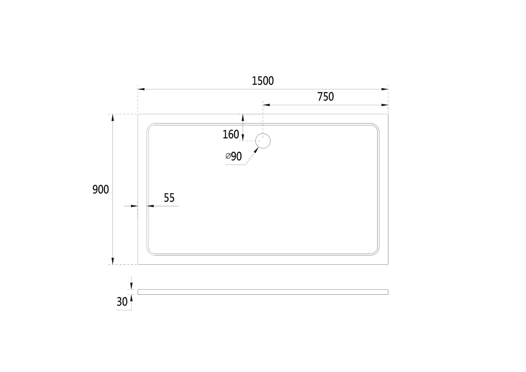 - Průměr otvoru pro sifon - 90 mm