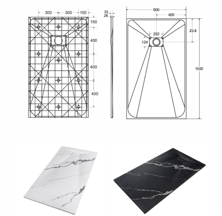 Elegantní ultratenká sprchová vanička VEXO MARBLE ČERNÁ je vyrobena ze speciálního SMC materiálu. Dodává se včetně sifonu, ale bez nožiček. Krytka sifonu je součástí balení.