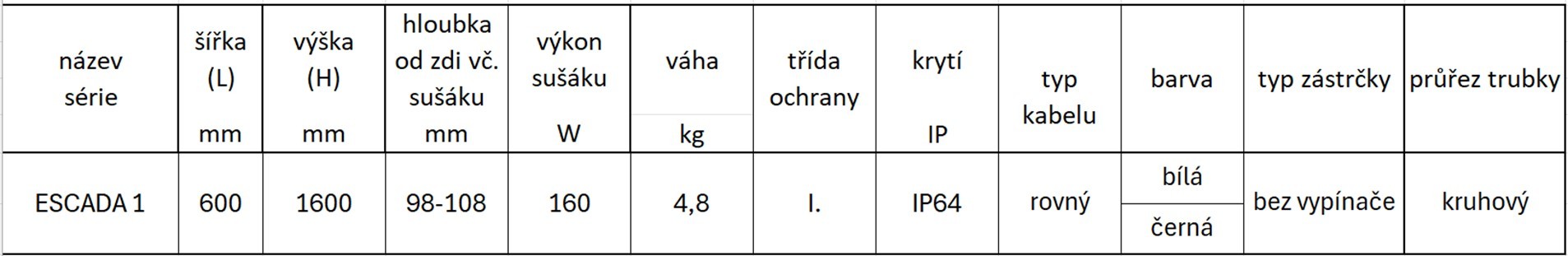 8 430,00 CZKelektrický sušák ESCADA 1, 600x1600 mm, C31 black mat