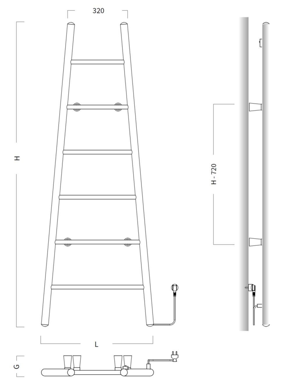 V bílé i černé variantě je barevně sladěn do posledního detailu – nejen trubky a uchycení, ale také napájecí kabel a elektrická zástrčka.