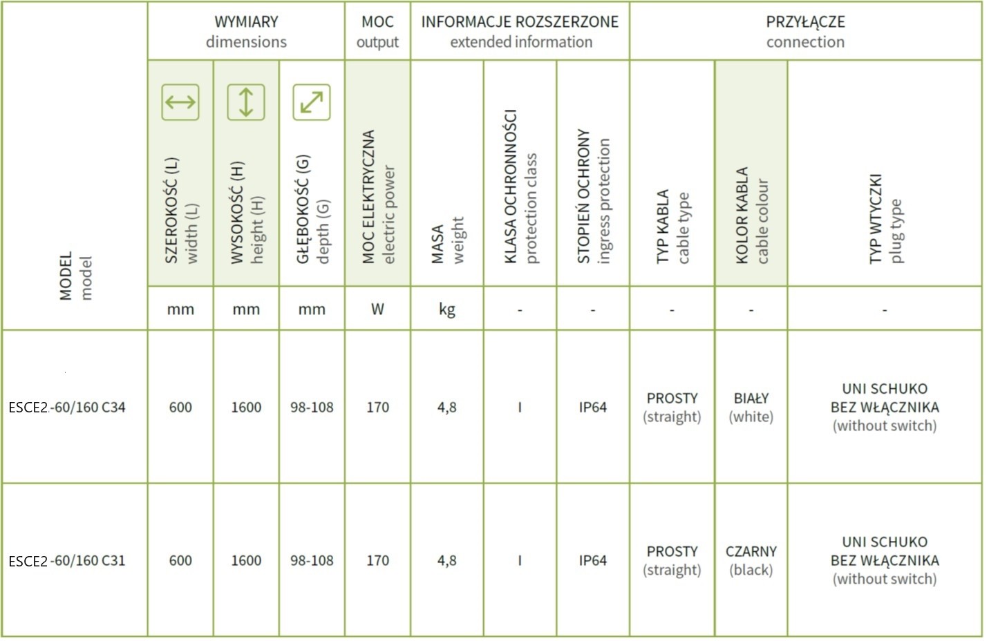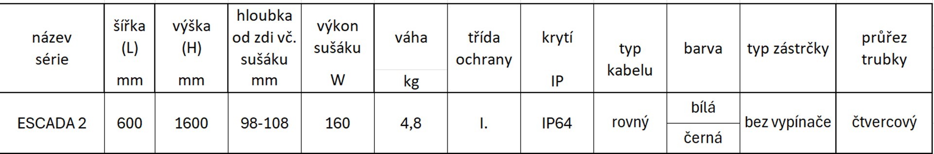 elektrický sušák ESCADA 2, 600x1600 mm, C34 white mat