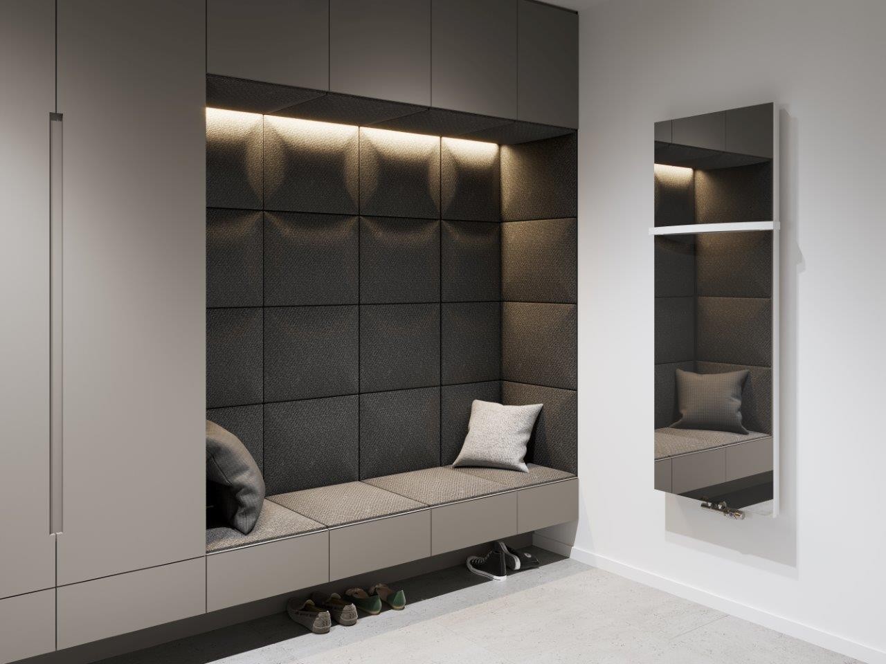 Tělo radiátoru INDIVI je tvořeno zrcadlem, ty jsou dodávány ve variantě L01 - stříbrná. Vzor zrcadel najdete v galerii obrázků produktu.