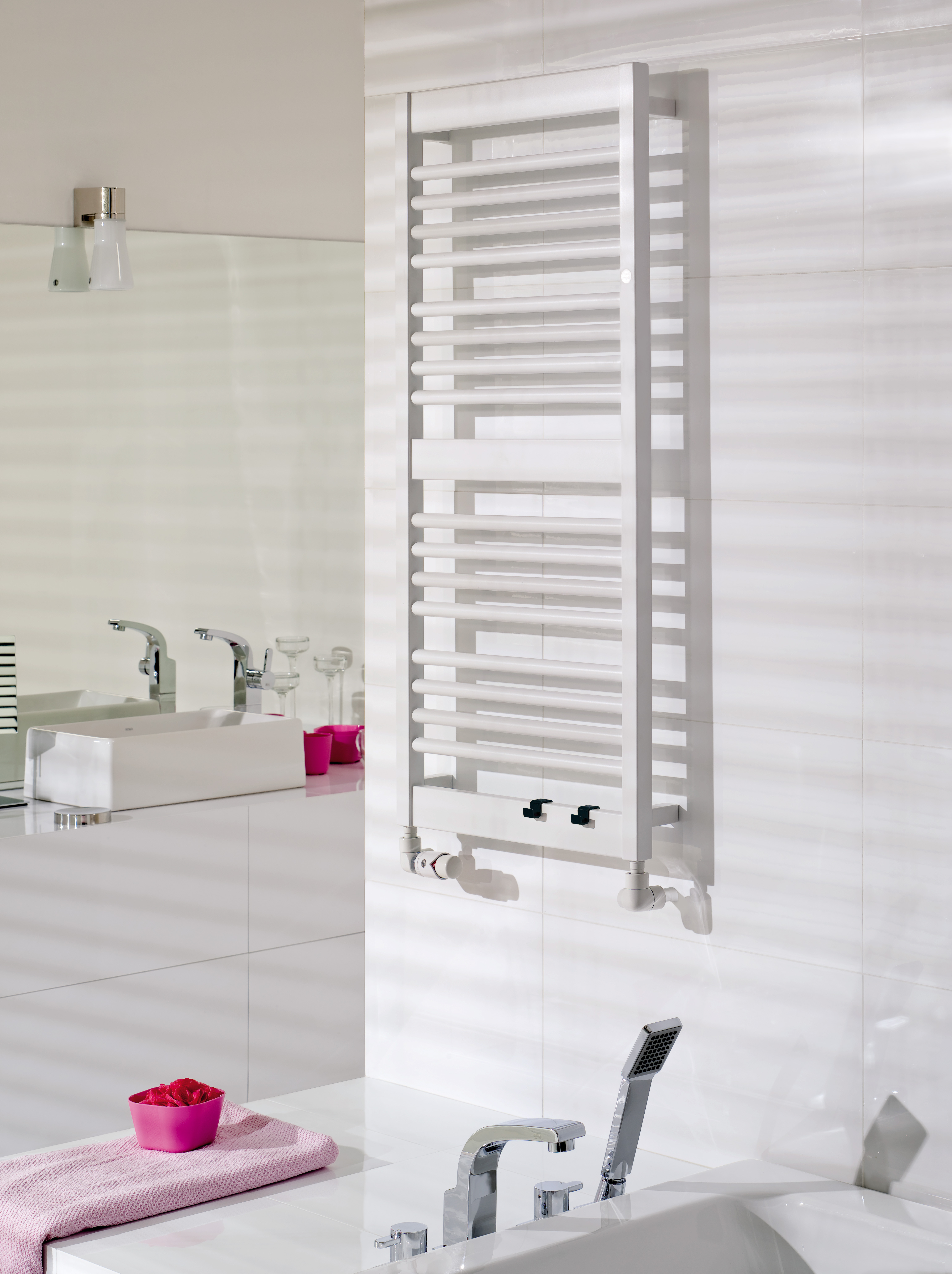 Koupelnový radiátor je vhodný k jedno i dvoutrubkovým vytápěcím systémům s čerpadlem.  Nebo jako samostatná vyhřívací tělesa s elektrickou otopnou tyčí. Radiátory mají menší objem vody, velmi rychle se zahřívají a jsou výborně regulovatelné, takže si snadno nastavíte tu správnou teplotu pro váš dokonalý komfort.