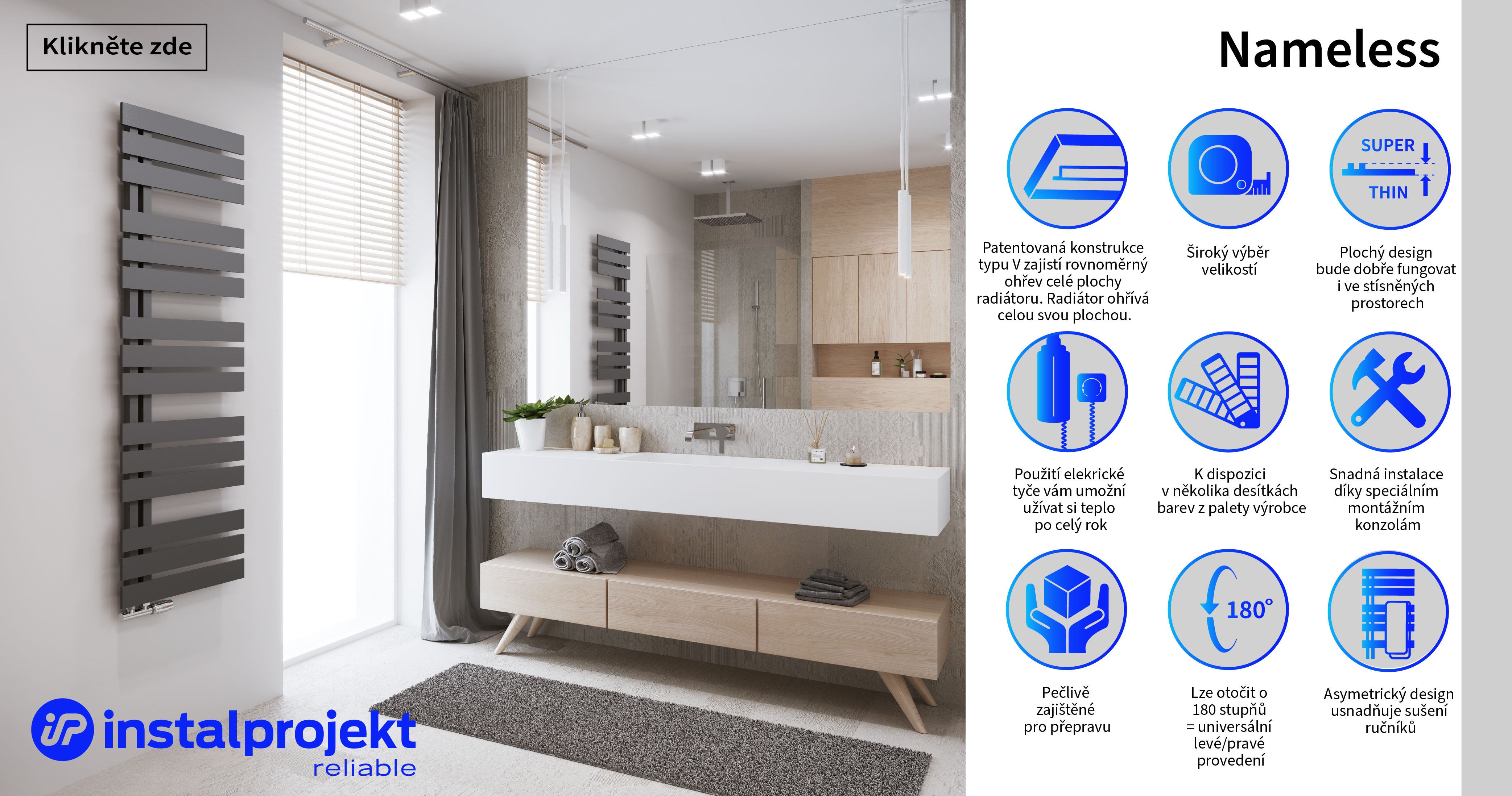 • 400 × 1186 mm, výkon 380 W, topná tyč 400 W