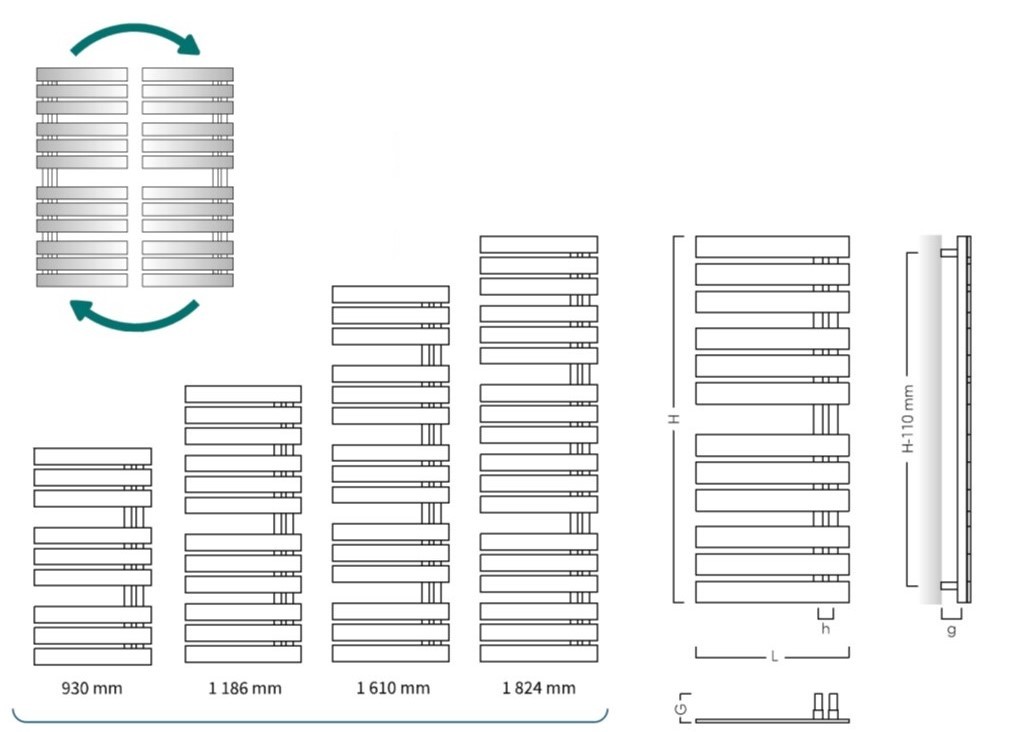 Radiátory jsou dodávány BEZ topné tyče, za rozměrem je pouze uveden vhodný výkon tyče pro patřičný rozměr. Standardní barva C35 white silk (bílá lesklá).