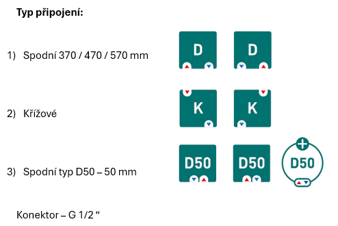 • připojení radiátoru klasické (na rozteč) nebo spodní 50 mm