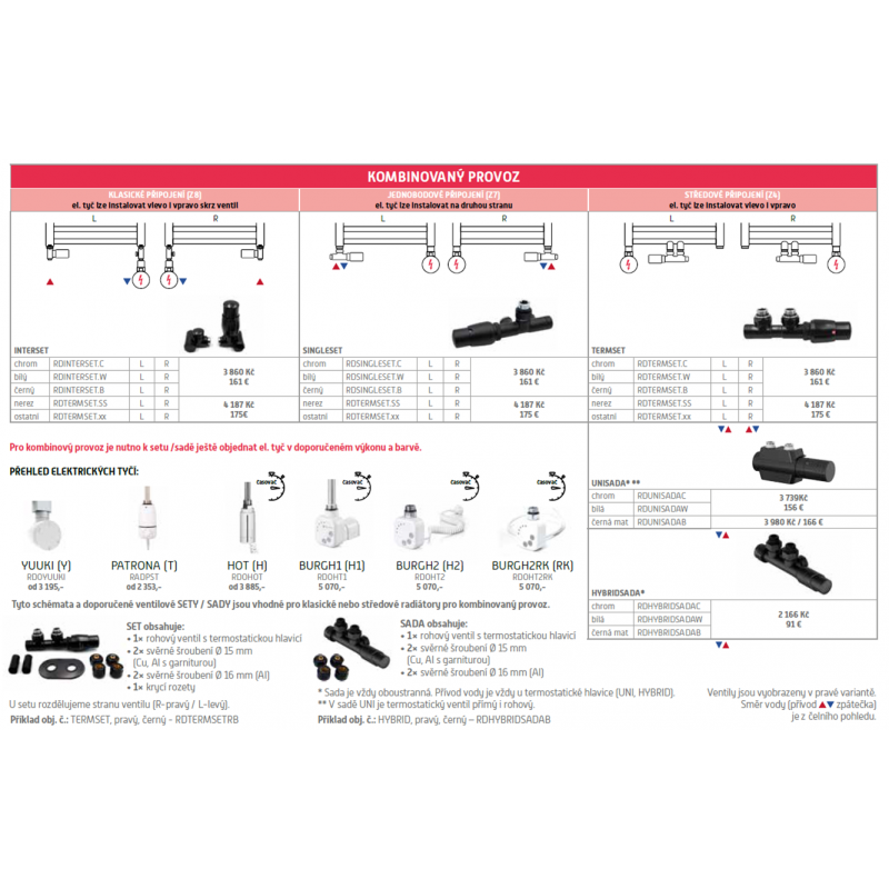 Radiátor lze objednat s příplatkovou výbavou Příplatek - Elektrický radiátor a díky tomu dostanete čistě elektrický radiátor (s již osazenou topnou tyčí HOT a naplněný speciální nemrznoucí teplonosnou směsí do otopných těles). Elektrické radiátory nejsou připojeny na rozvody TUV, snadno ho zapojíte pouze do elektrické zásuvky a užíváte si teplo v koupelně kdykoliv chcete.
