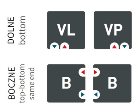 Příplatek za spodní pravé / levé připojení 20% k ceně za boční připojení.