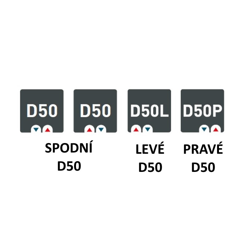 Připojení - centrální spodní D50. Standardně je umístěno na střed radiátoru, pokud si přejete umístění na levou, či pravou stranu, vložte tuto informaci do poznámky k objednávce.