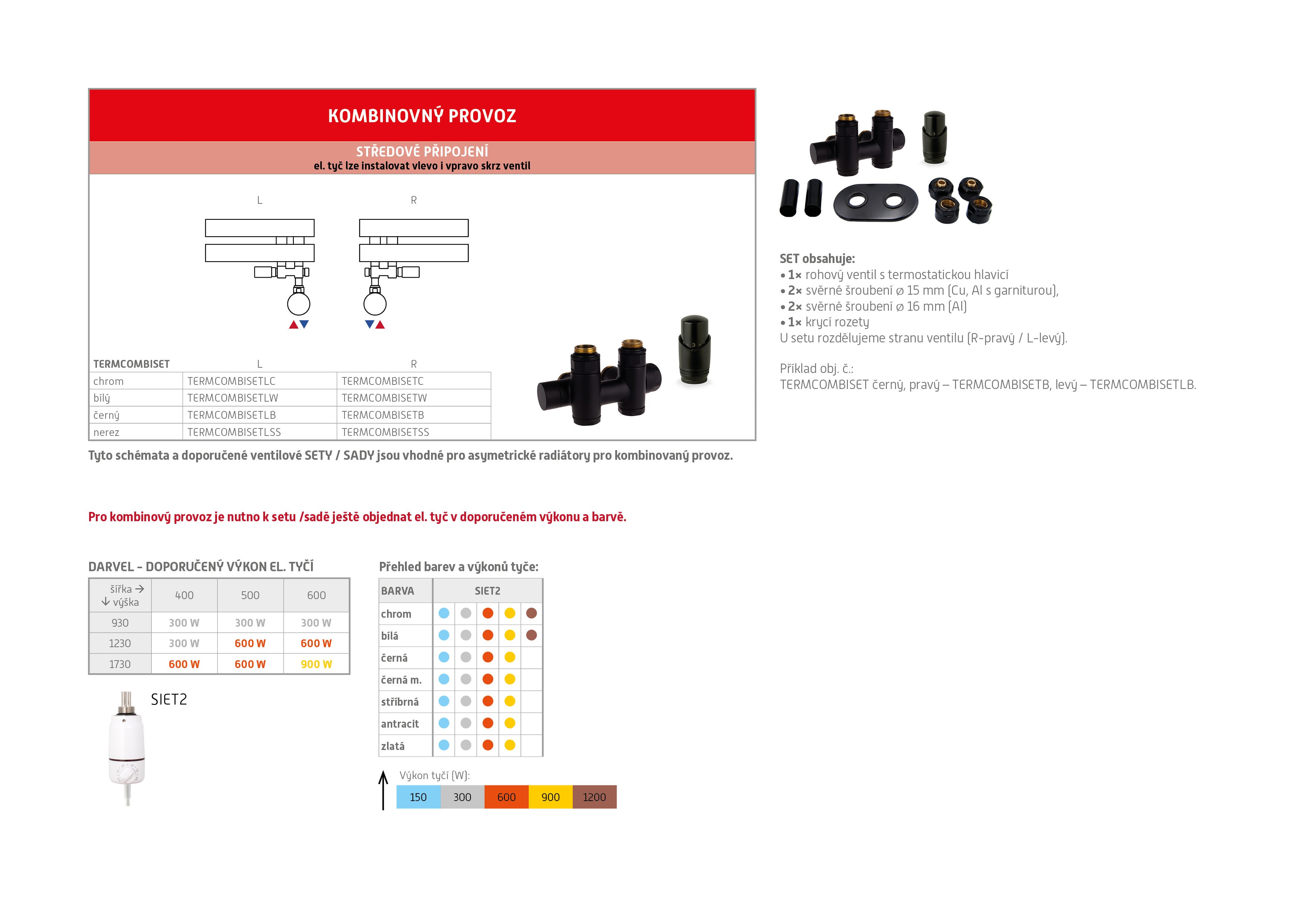 - 500 × 1230 mm, výkon 508 W, topná tyč 600 W