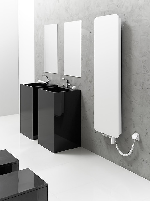 Skleněný a plochý radiátor INDIVI NEW je ideálním doplňkem v každé koupelně. Velké zrcadlo opticky zvětšuje každou místnost a navíc zdůrazňuje individualitu a krásu odražených objektů. Ideální do velké koupelny nebo předsíně. Standardně je dodáván v barvě C34 white mat pro a bílé sklo L04 (pro vybrané rozměry lze i zrcadlo L01). Pro černé sklo L05 se dodává radiátor v barvě C31 black mat.