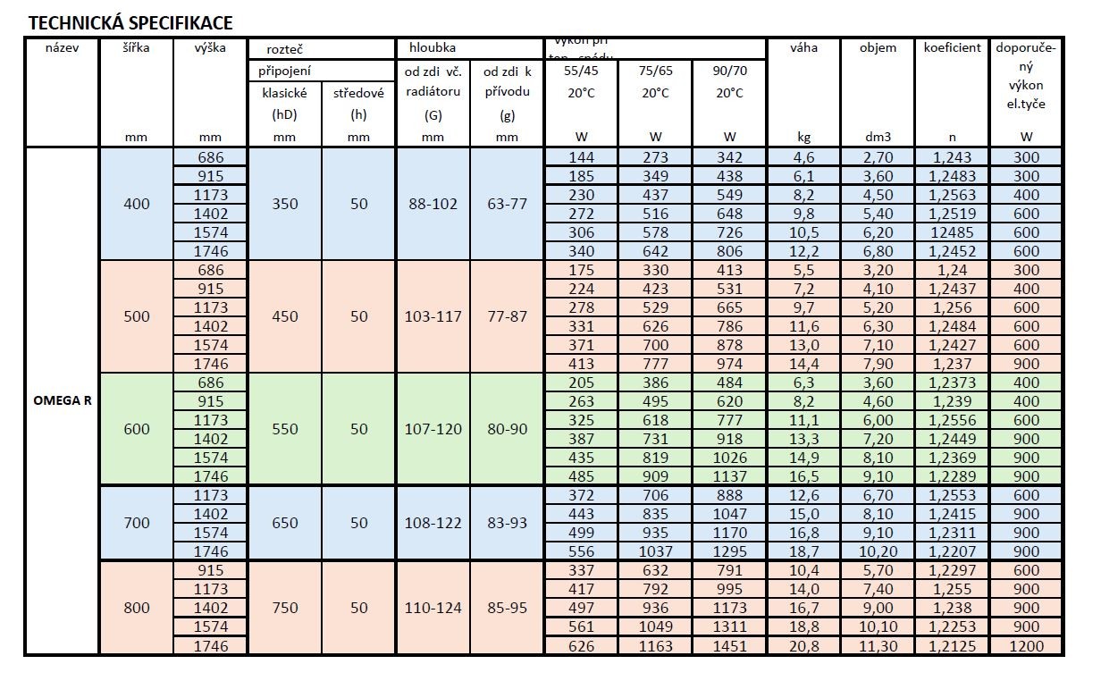 Radiátory jsou dodávány BEZ topné tyče, za rozměrem je pouze uveden vhodný výkon topné tyče pro patřičný rozměr.