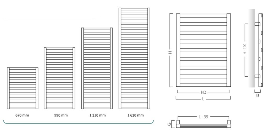 Radiátory jsou dodávány BEZ topné tyče, za rozměrem je pouze uveden vhodný výkon tyče pro patřičný rozměr. Standardní barva C35 white silk (bílá lesklá).