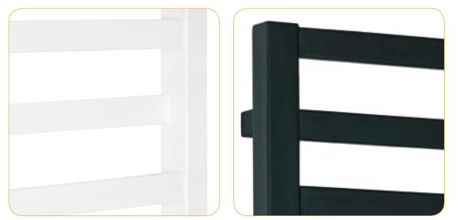 Radiátory jsou dodávány BEZ topné tyče, za rozměrem je pouze uveden vhodný výkon tyče pro patřičný rozměr. Standardní barva C35 white silk (bílá lesklá).