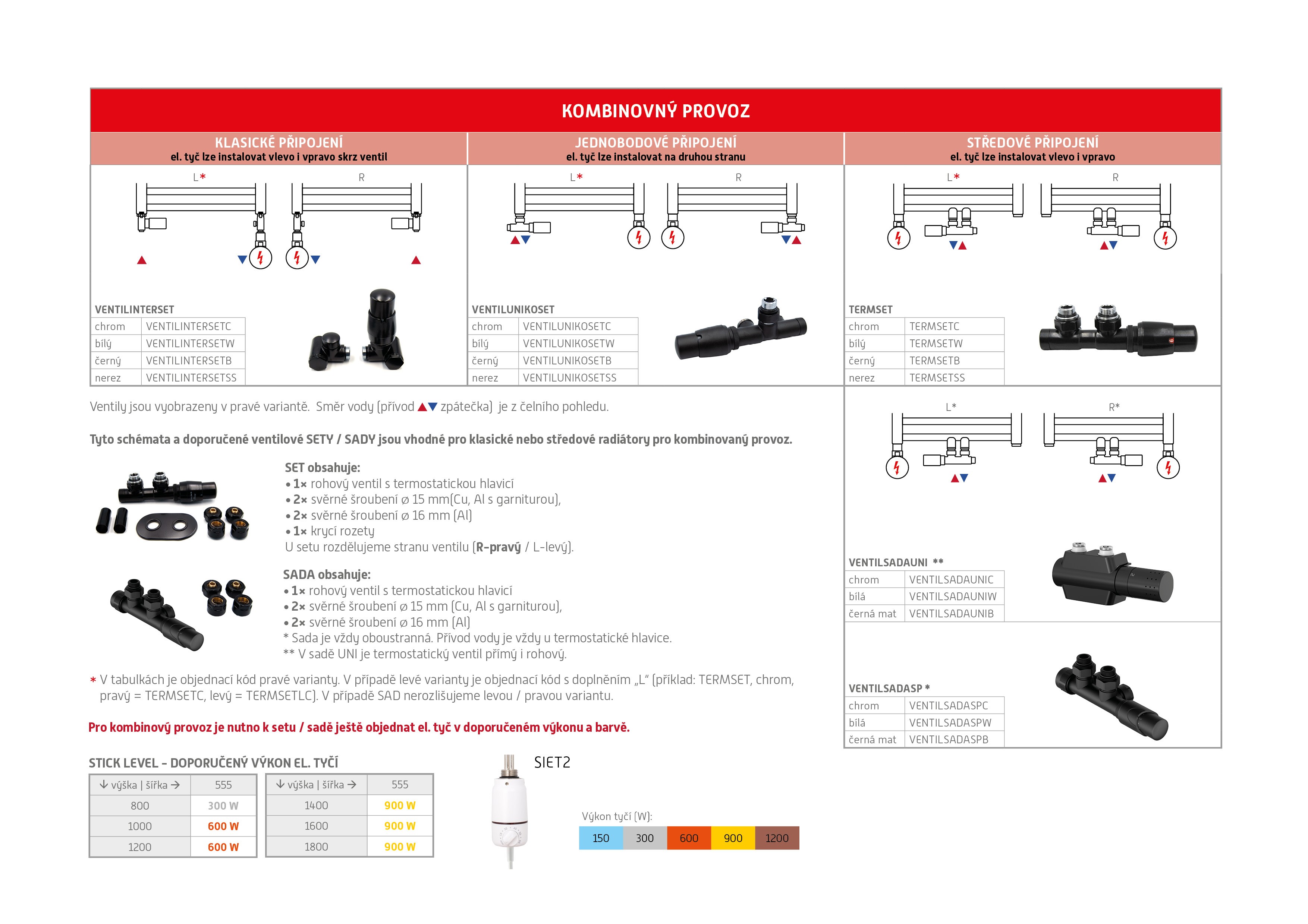 - 1000 × 555 mm, výkon 554 W, topná tyč 600 W - boční připojení