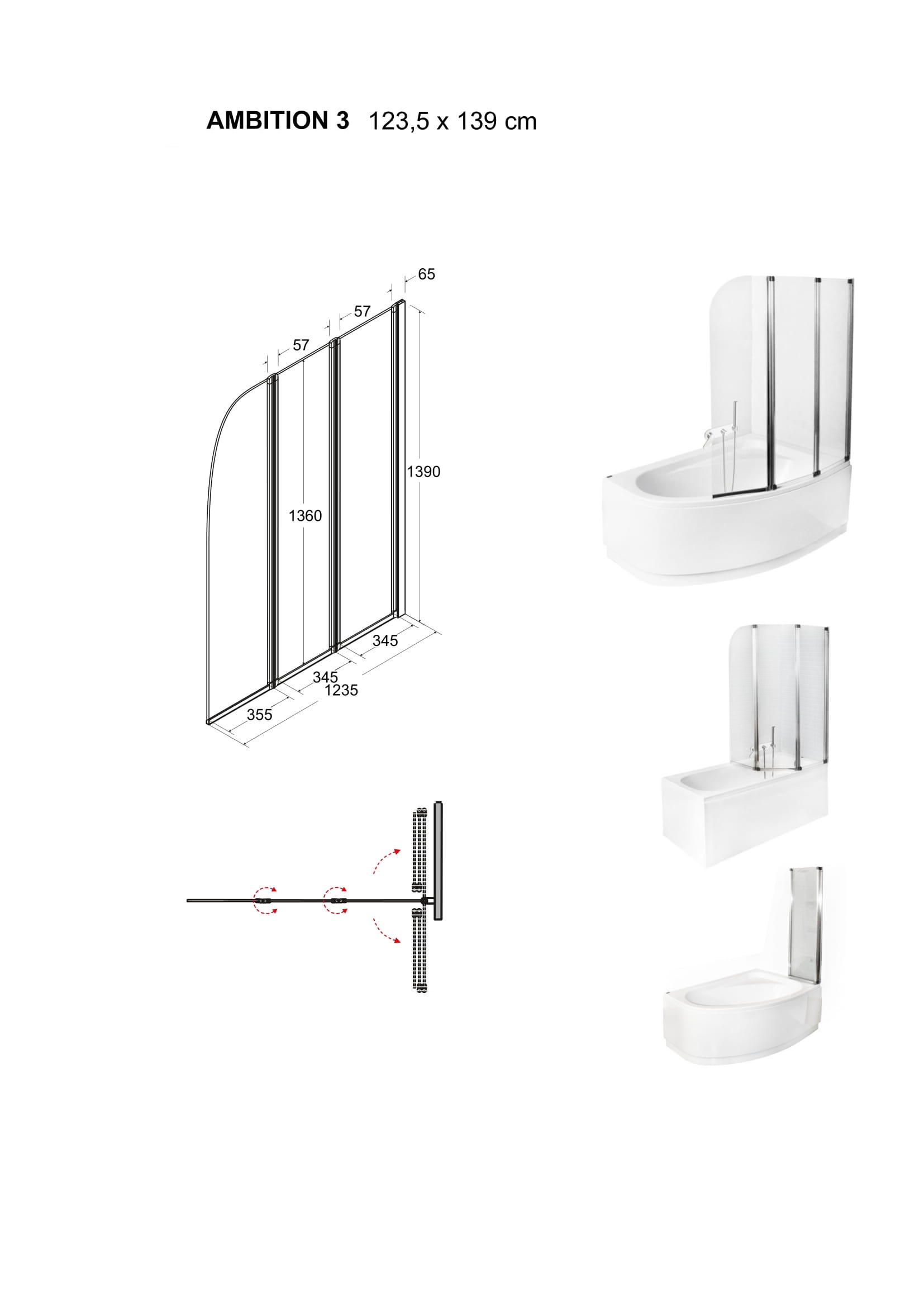 Vanová zástěna AMBITION 3 vyniká kvalitním zpracováním hliníkového rámu v chromové úpravě a bezpečnostního skla, které odolá každodennímu používání. Díky třídílnému provedení se skvěle hodí pro větší obdélníkové vany, ale také pro některé asymetrické typy van. Praktický zalamovací systém otevírání s možností plného sklopení ke stěně na obě strany výrazně šetří prostor a zvyšuje komfort při sprchování i údržbě.