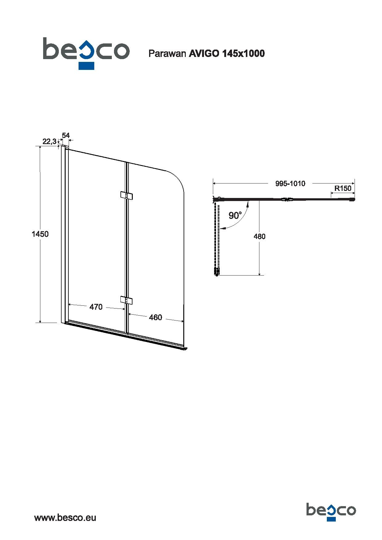 Zástěna AVIGO je vybavena odolným hliníkovým rámem s leštěnou chromovou úpravou a čirým bezpečnostním sklem o síle 5 mm, které zajišťuje maximální bezpečnost i styl. Dvoudílné zalamovací provedení na pantech je vhodné pro všechny obdélníkové vany i některé asymetrické modely. Díky snadnému skládání výrazně šetří místo a zpříjemňuje každodenní používání.