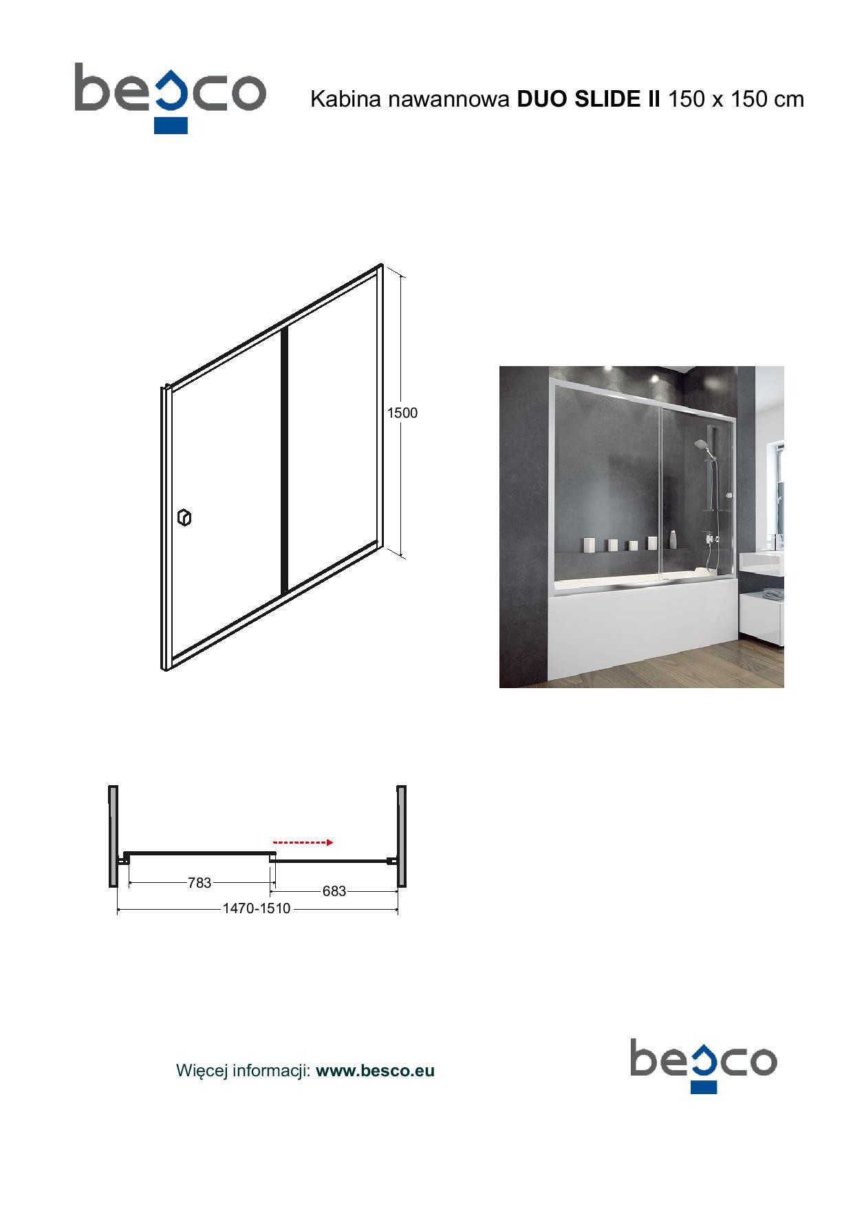 Luxusní vanová zástěna DUO SLIDE II dokonale chrání Vaší koupelnu při koupání i sprchování. Je dodávána v provedení s 6 mm bezpečnostním sklem a nabízí jednu posuvnou stranu.