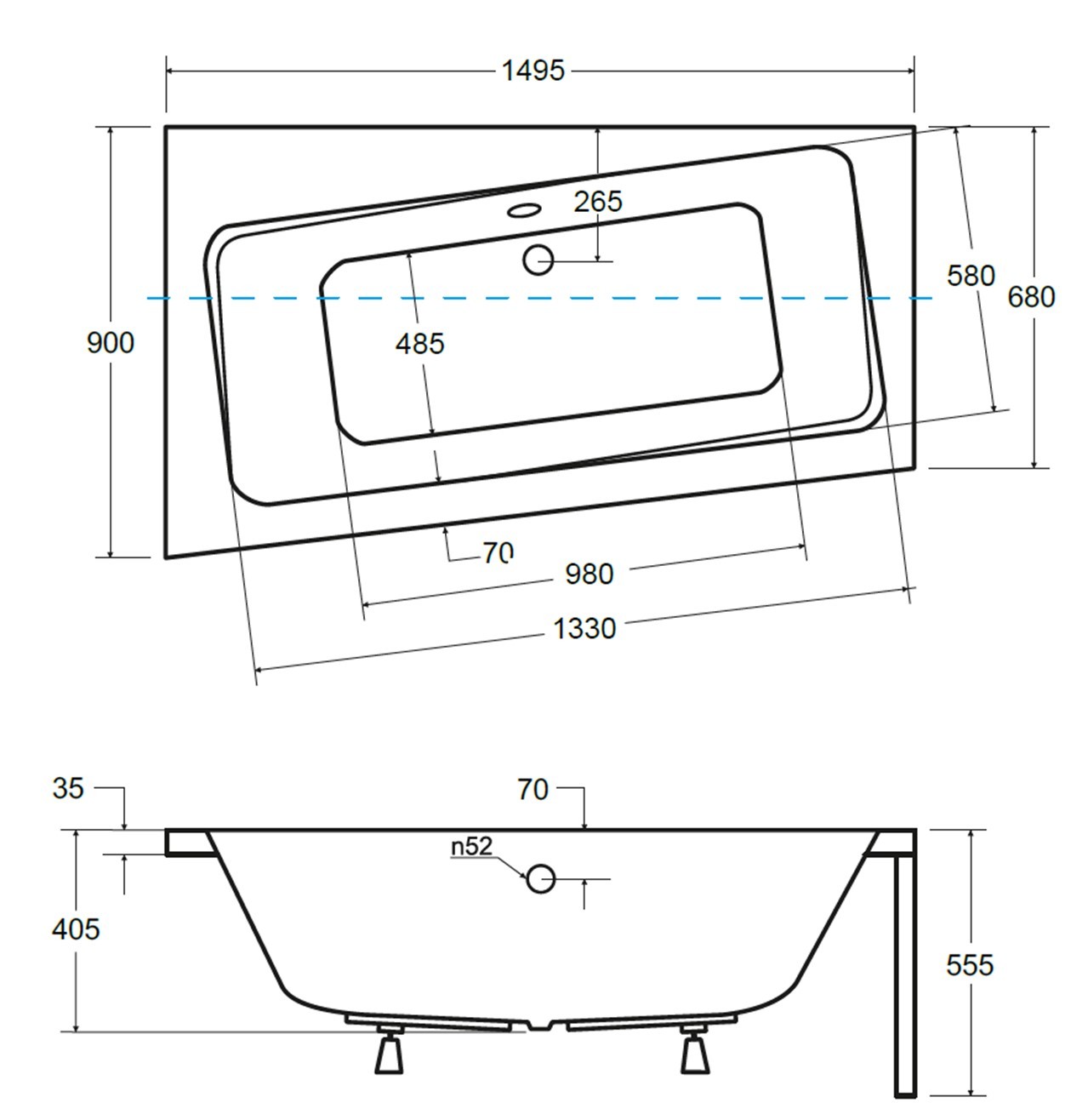 | Rozměr vany | 150 × 90 cm |