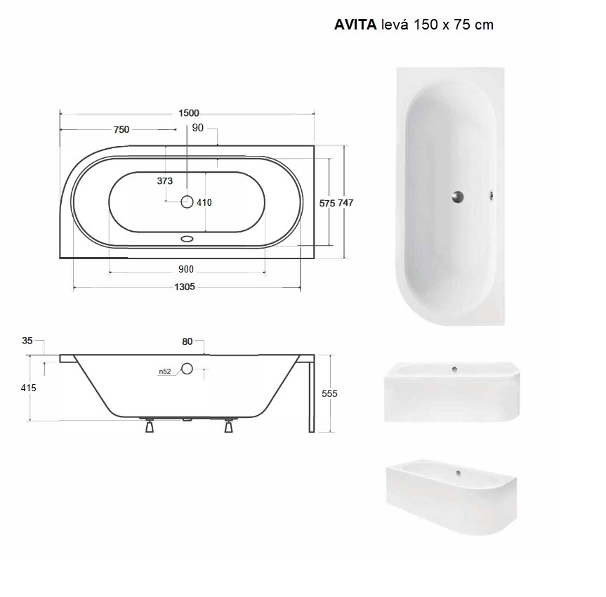 5 490,00 CZKvana AVITA 150 (1500x750 mm), levé provedení, bez nožiček