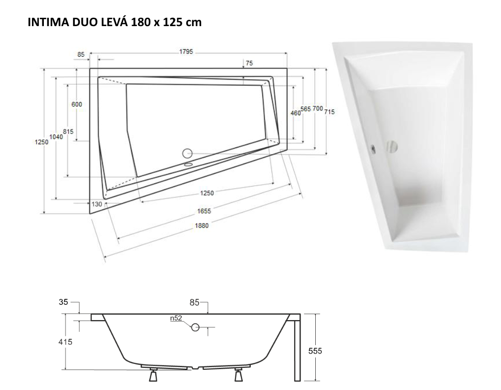 vana INTIMA DUO 180 (1800x1250 mm), levé provedení, bez nožiček