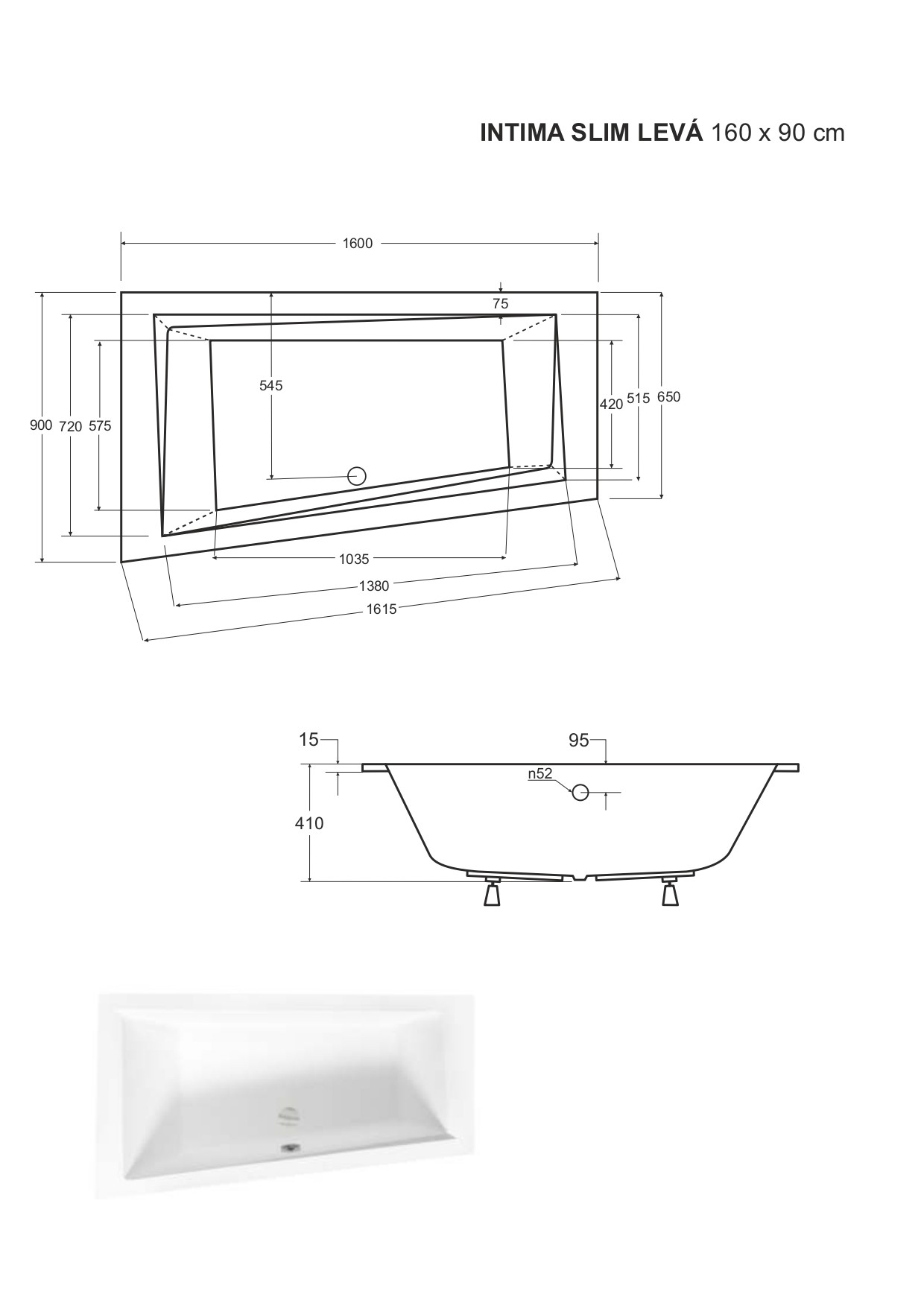 13 690,00 CZKvana INTIMA SLIM 160 (1600x900 mm), levé provedení, bez nožiček