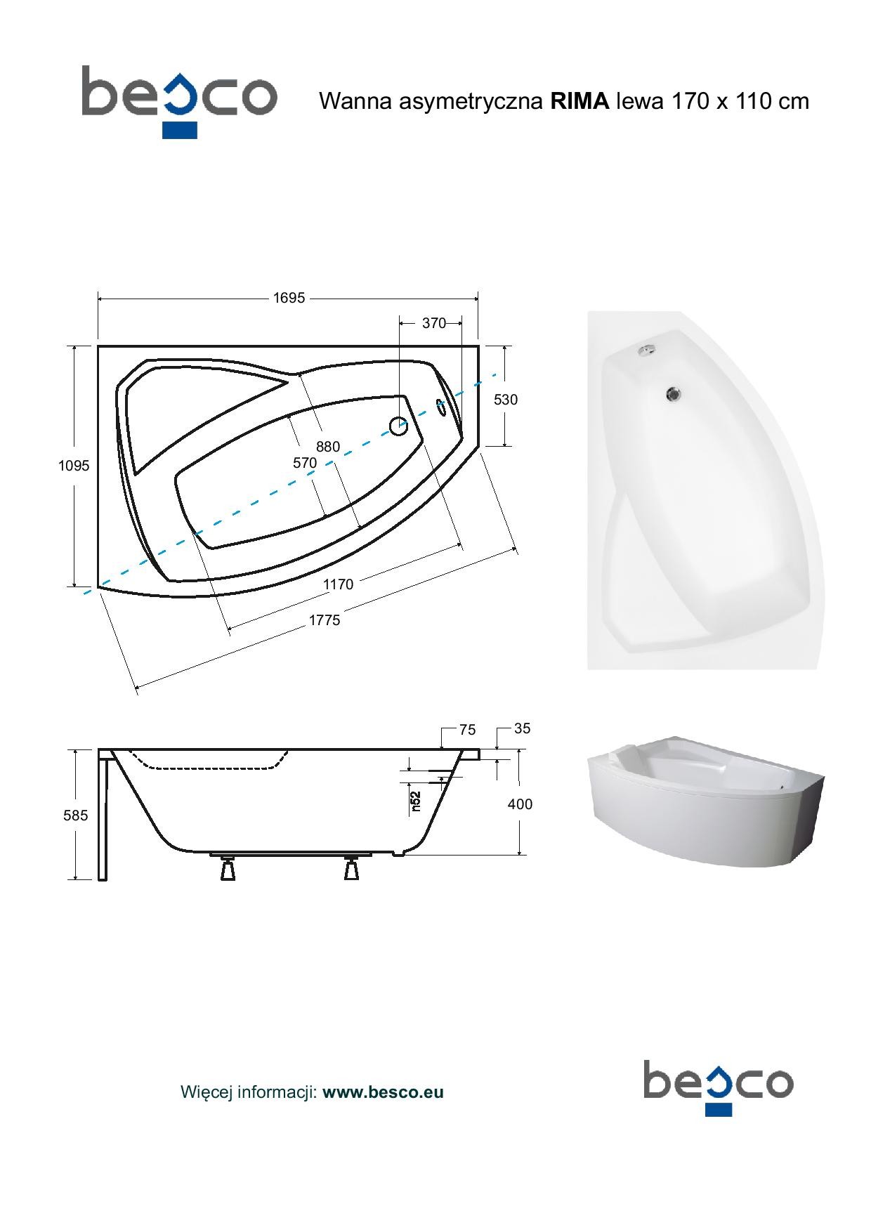 Rozměr vany 170 × 110 cm