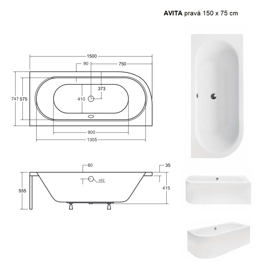 5 490,00 CZKvana AVITA 150 (1500x750 mm), pravé provedení, bez nožiček