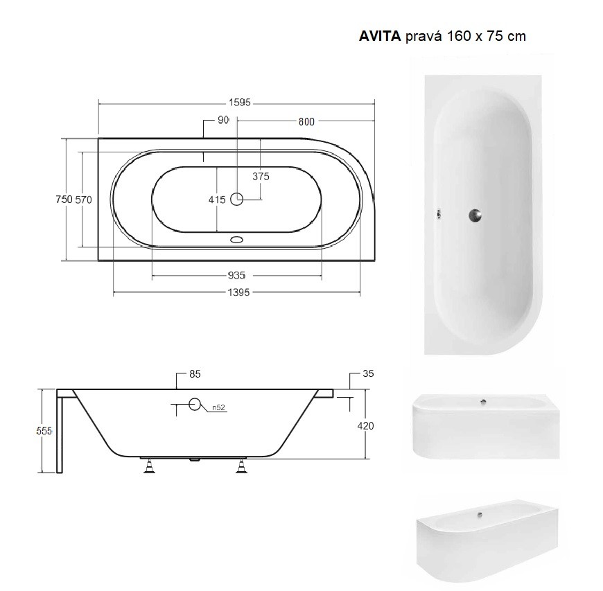 5 790,00 CZKvana AVITA 160 (1600x750 mm), pravé provedení, bez nožiček