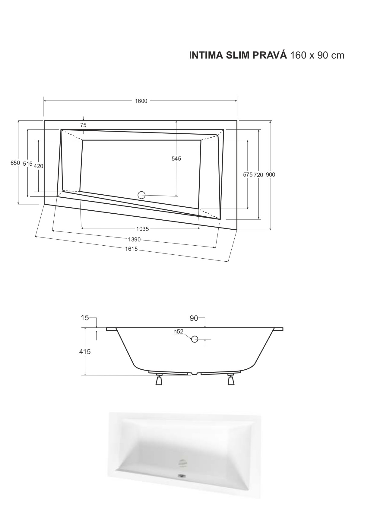 13 690,00 CZKvana INTIMA SLIM 160 (1600x900 mm), pravé provedení, bez nožiček