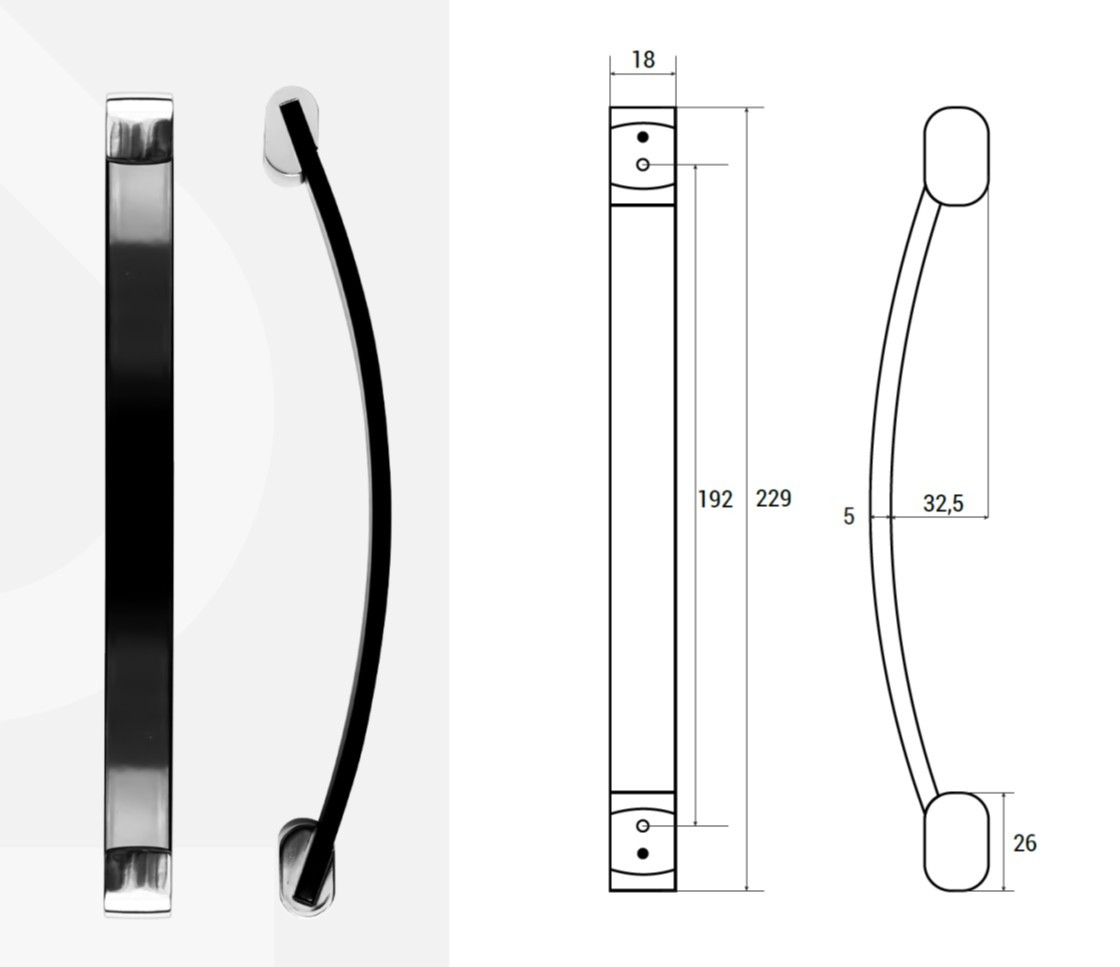 Madlo FLEX k vanám Besco - chrom + černá barva, délka 23 cm