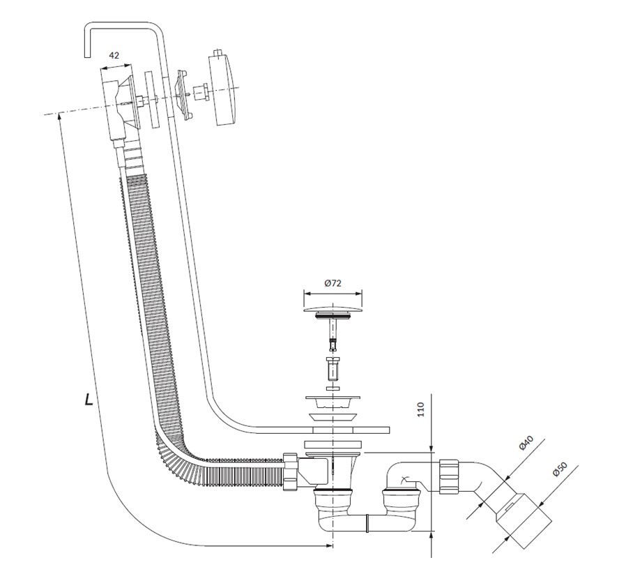 - určeno pro vany s průměrem odtoku ø5,2 cm