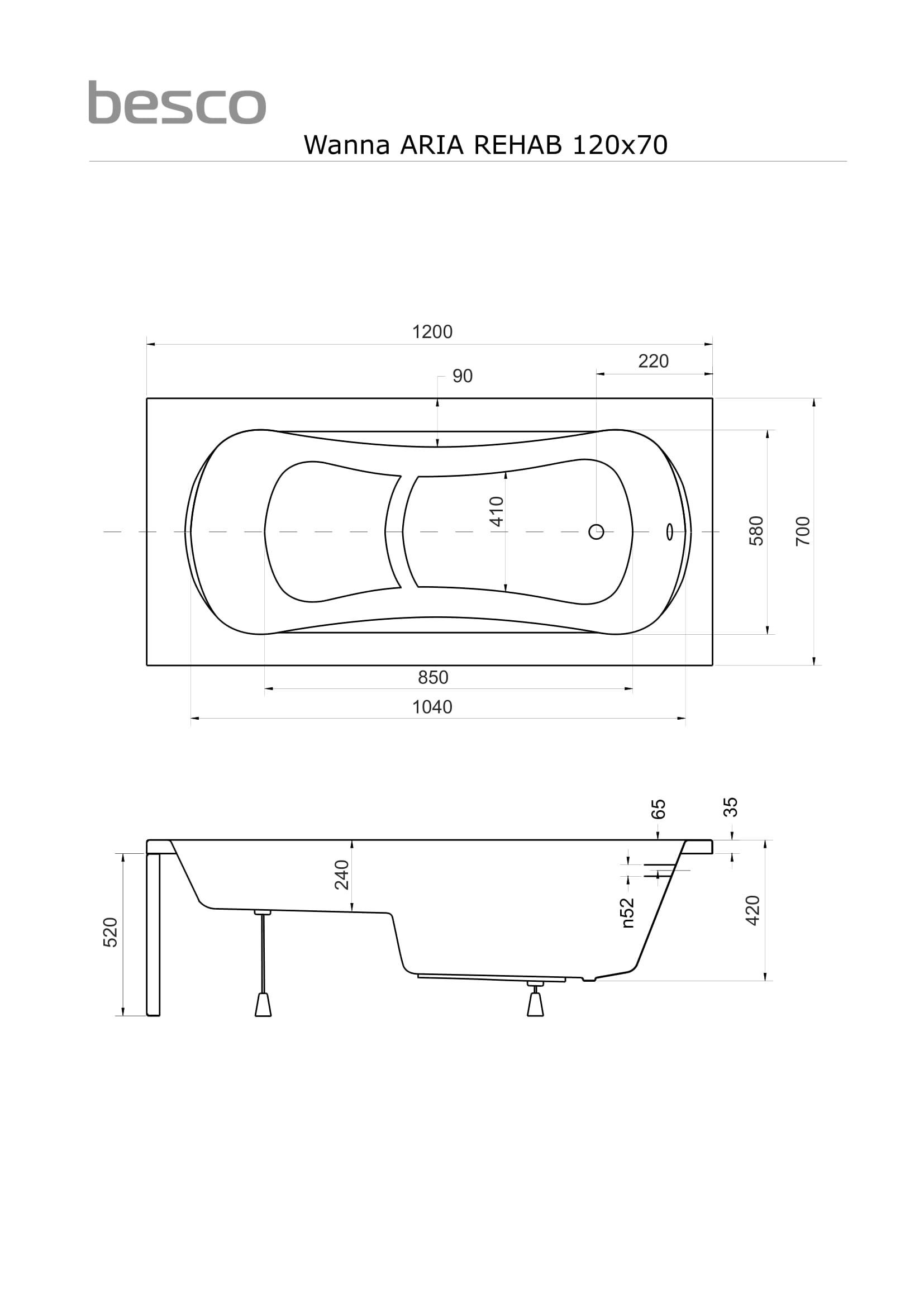 5 690,00 CZKvana ARIA REHAB 120 (1200x700 mm), se sedátkem, bez nožiček