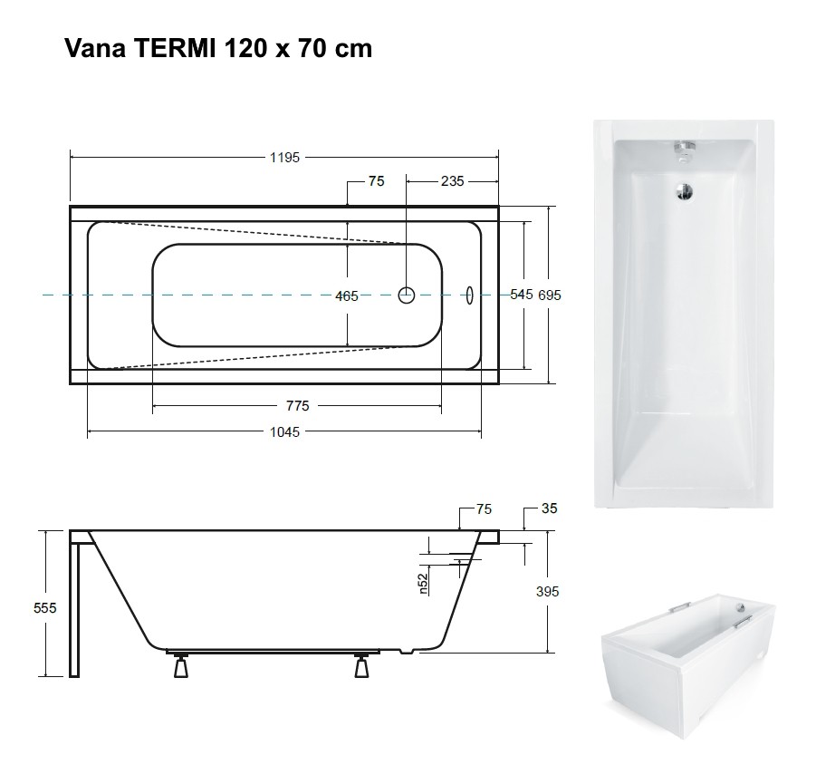 Obdélníková vana TERMI vyniká vysoce kvalitním zpracováním a spolehlivou funkčností všech součástí a materiálů. Užíváte si rádi komfort a pohodu spojenou s vanou a také rychlo ...Více informací