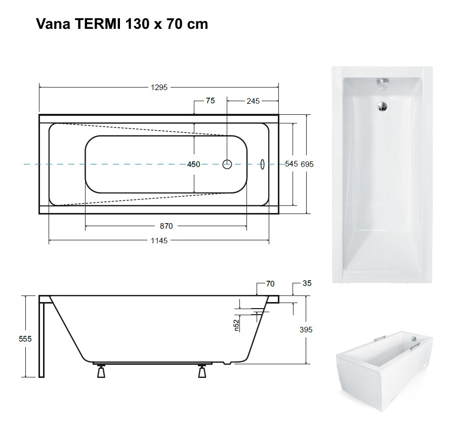 Obdélníková vana TERMI vyniká vysoce kvalitním zpracováním a spolehlivou funkčností všech součástí a materiálů.