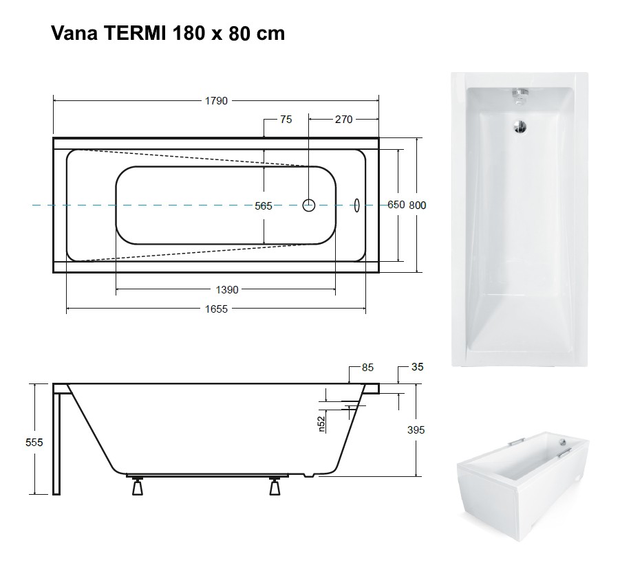 Obdélníková vana TERMI vyniká vysoce kvalitním zpracováním a spolehlivou funkčností všech součástí a materiálů.