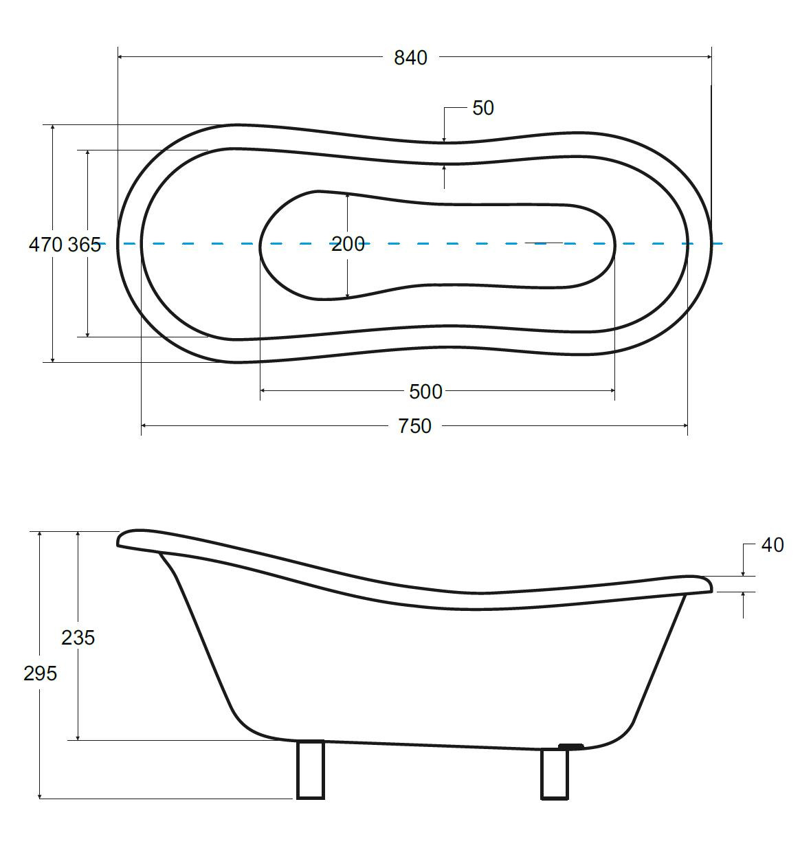 Rozměr volně stojící vaničky: