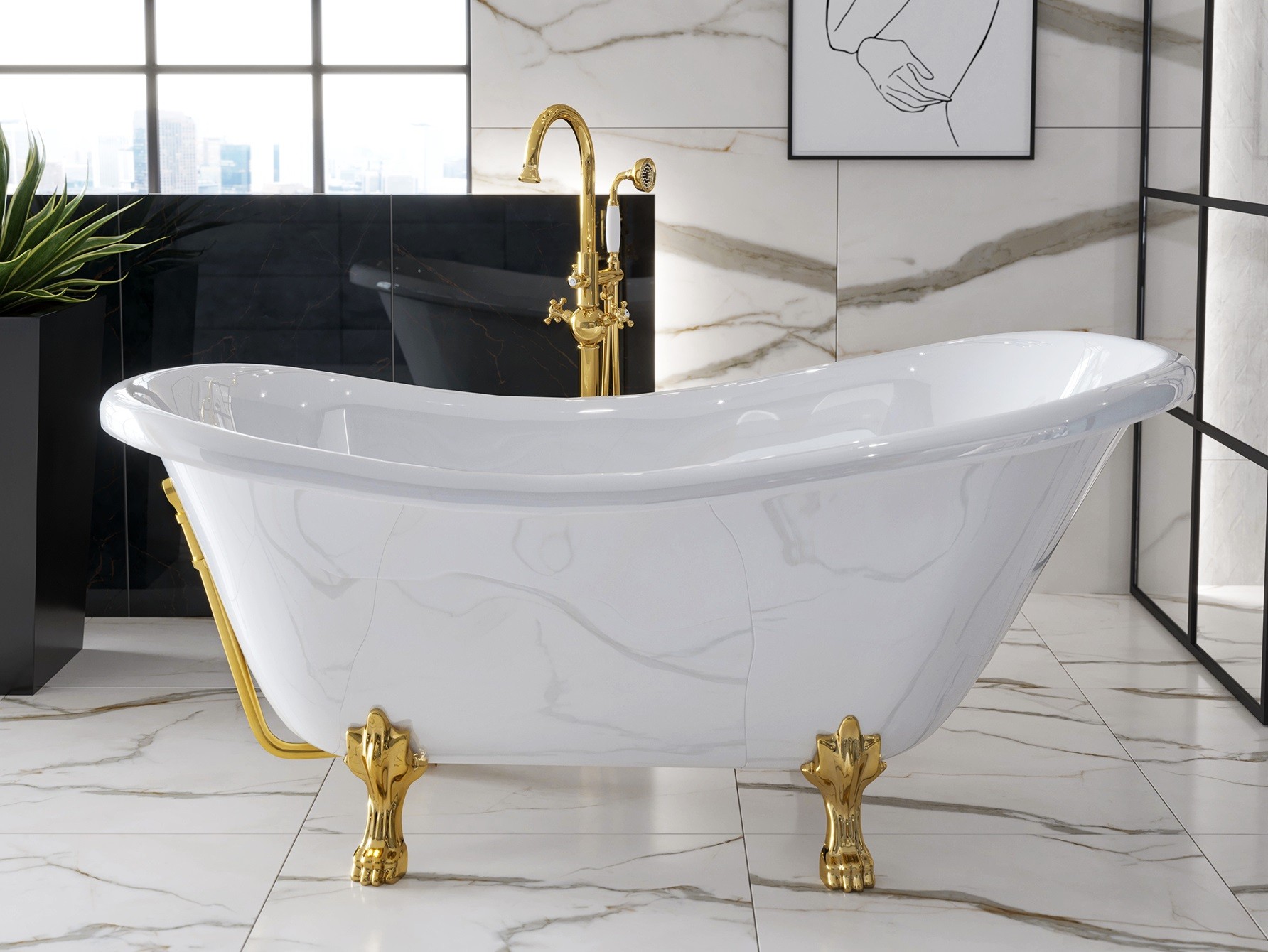 52 590,00 CZKvana volně stojící OTYLIA, 1600 × 770 mm, GLAM01 zlatá barva/bílá barva, nohy zlatá barva