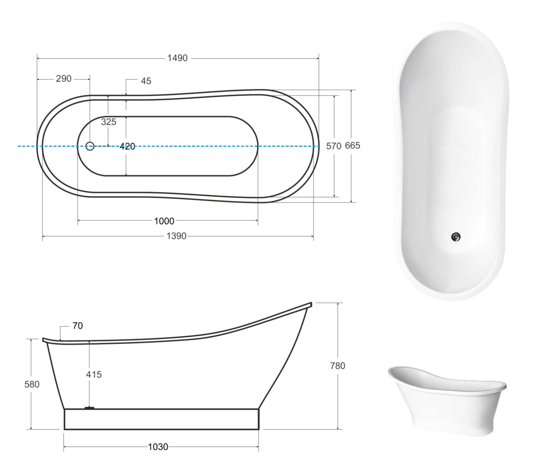 Rozměr volně stojící vany: