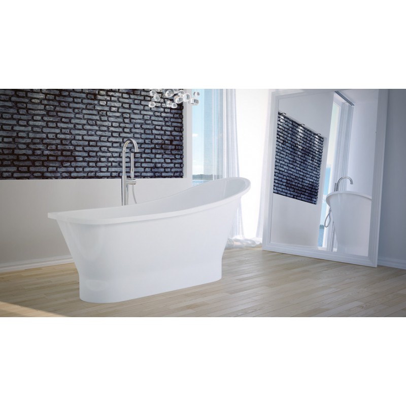 vana volně stojící z litého mramoru GLORIA 1600x680 mm, bílá barva, bílý sifon