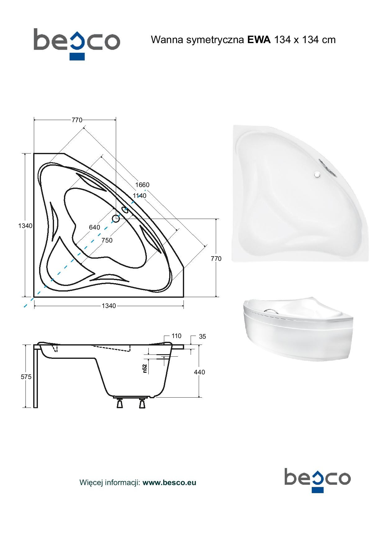 Rohová vana EWA vyniká vysoce kvalitním zpracováním a spolehlivou funkčností všech součástí a materiálů. Nožičky k vaně je nutné dokoupit. Uvedená cena je pouze za holou vanu. ...Více informací