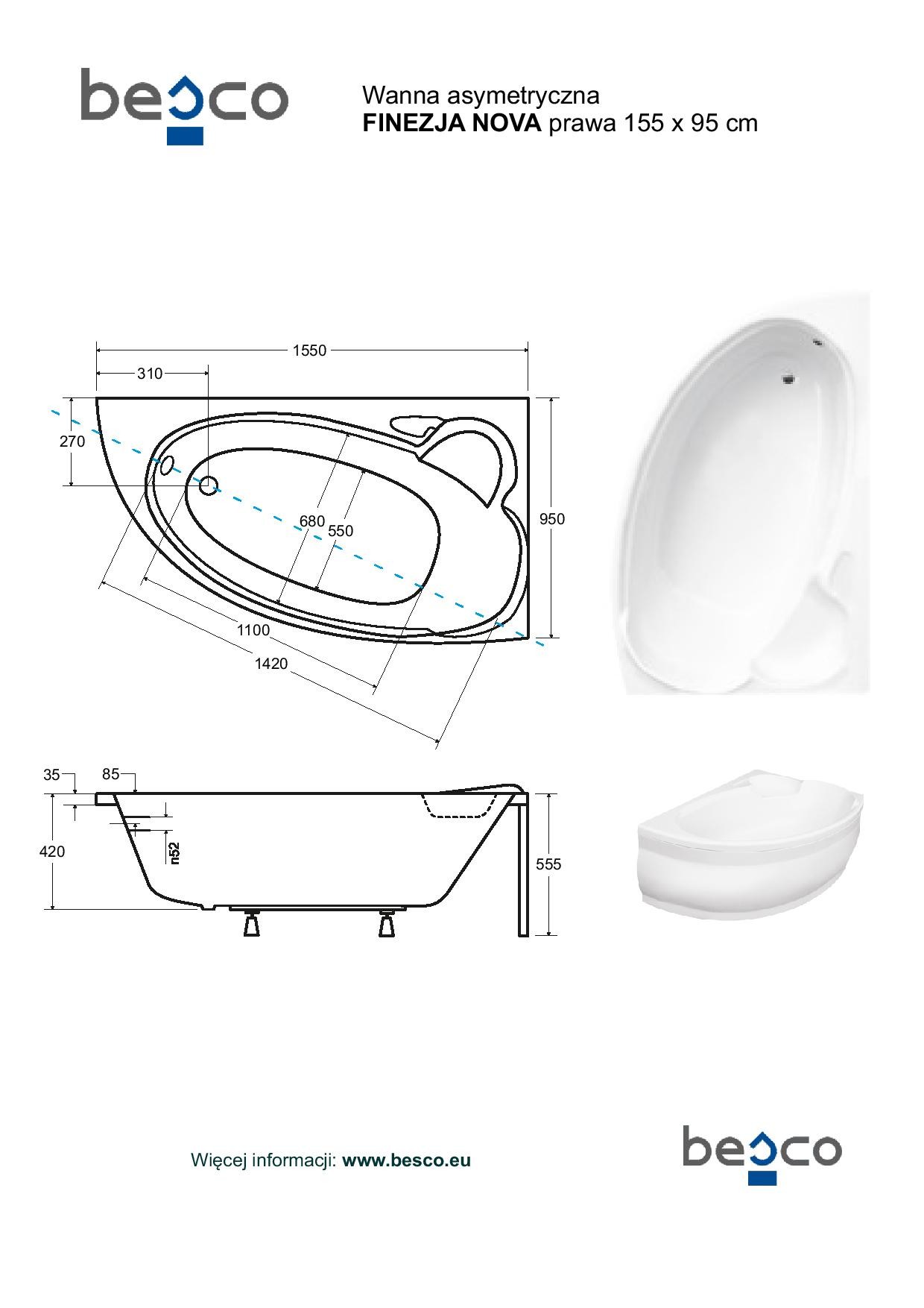 vana FINEZJA NOVA 155 (1550x950 mm), pravé provedení, bez nožiček