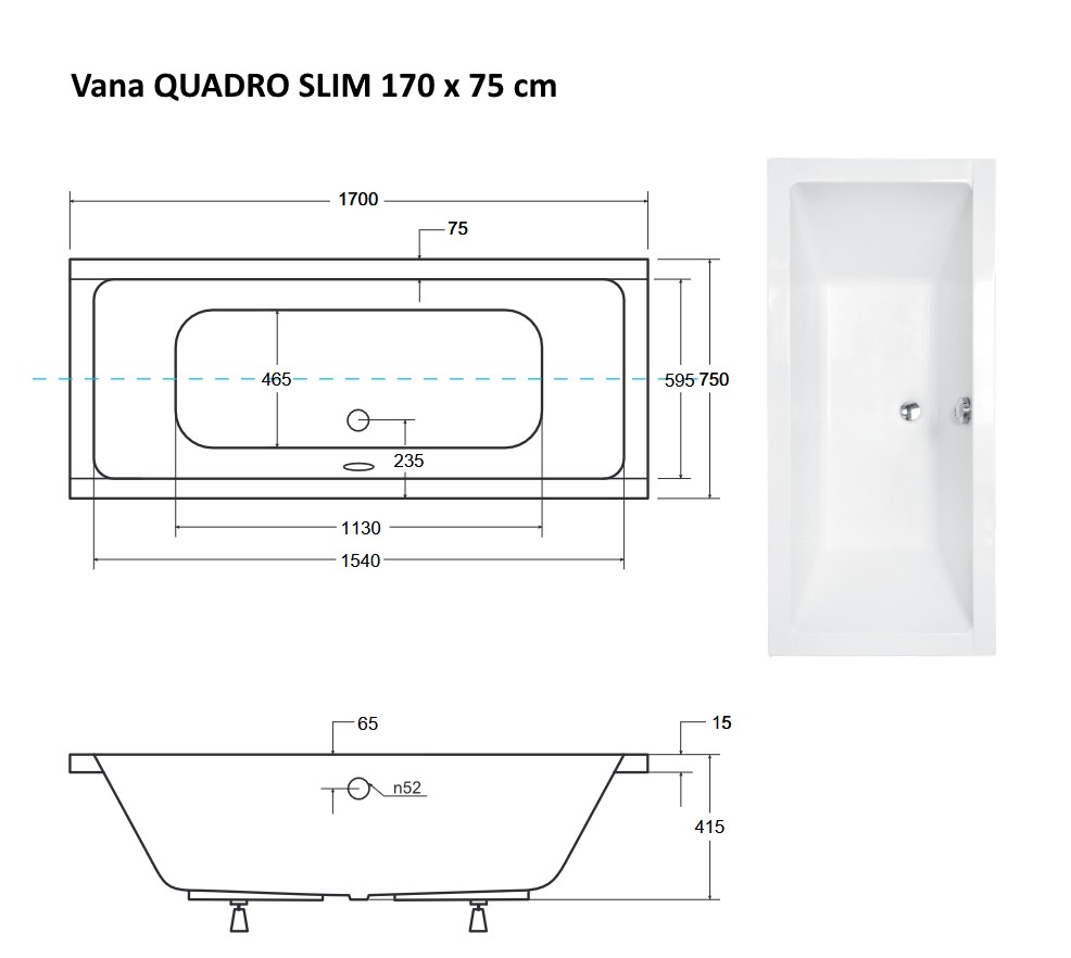 Obdélníková vana QUADRO SLIM vyniká vysoce kvalitním zpracováním a spolehlivou funkčností všech součástí a materiálů.