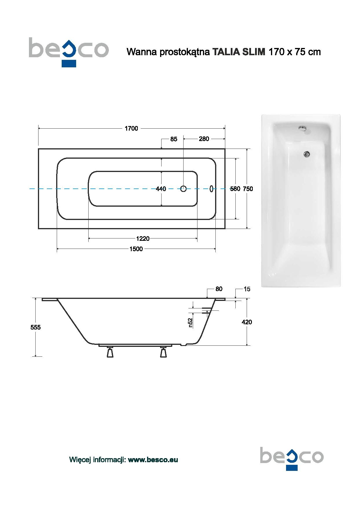 | Rozměr vany | 170 × 75 cm |
