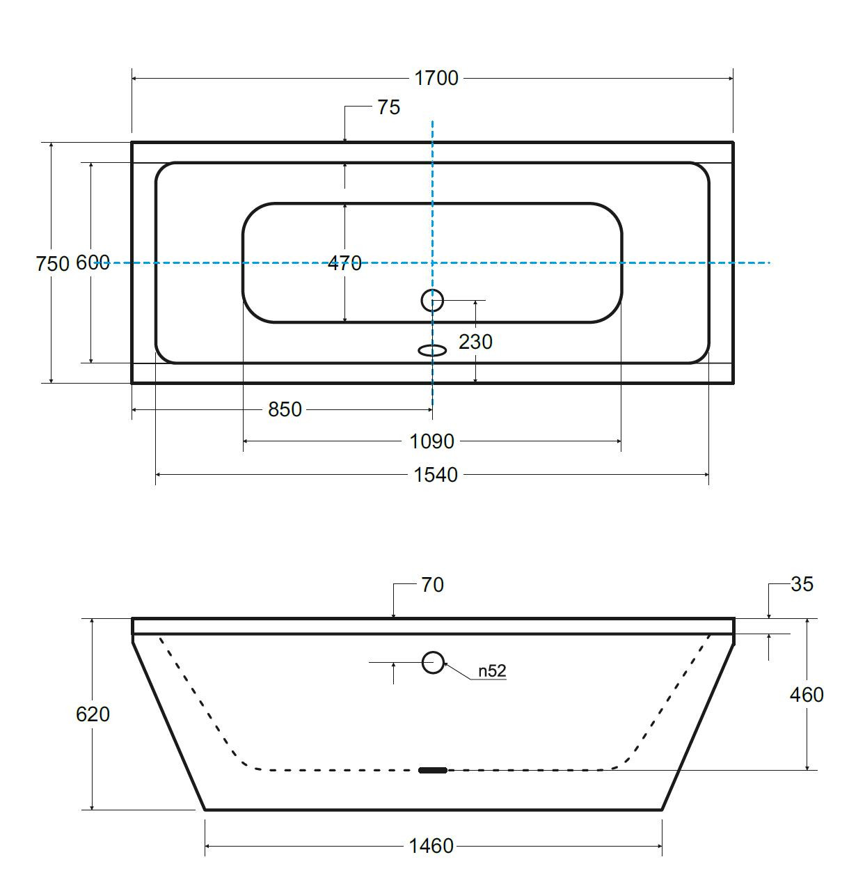 31 390,00 CZKvana volně stojící ze sanitárního kompozitu VERA, 1700 × 750 mm, bílá barva