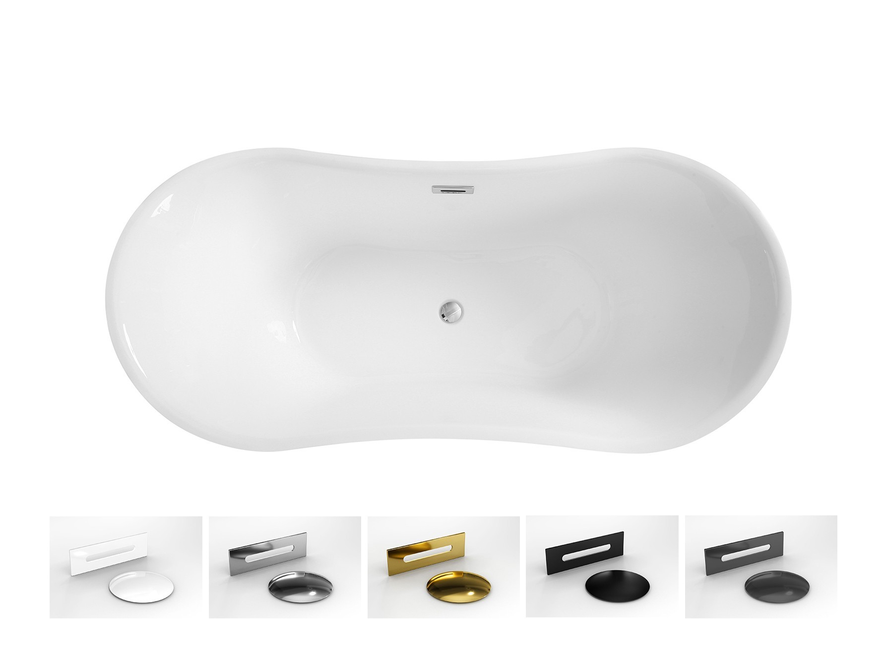 Součástí vany je i odtoková souprava click-clack s přepadem v barvách: