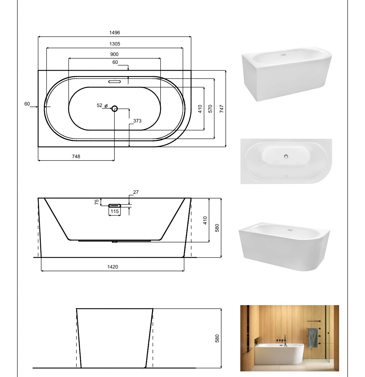 | Rozměr vany | 150 × 75 cm |